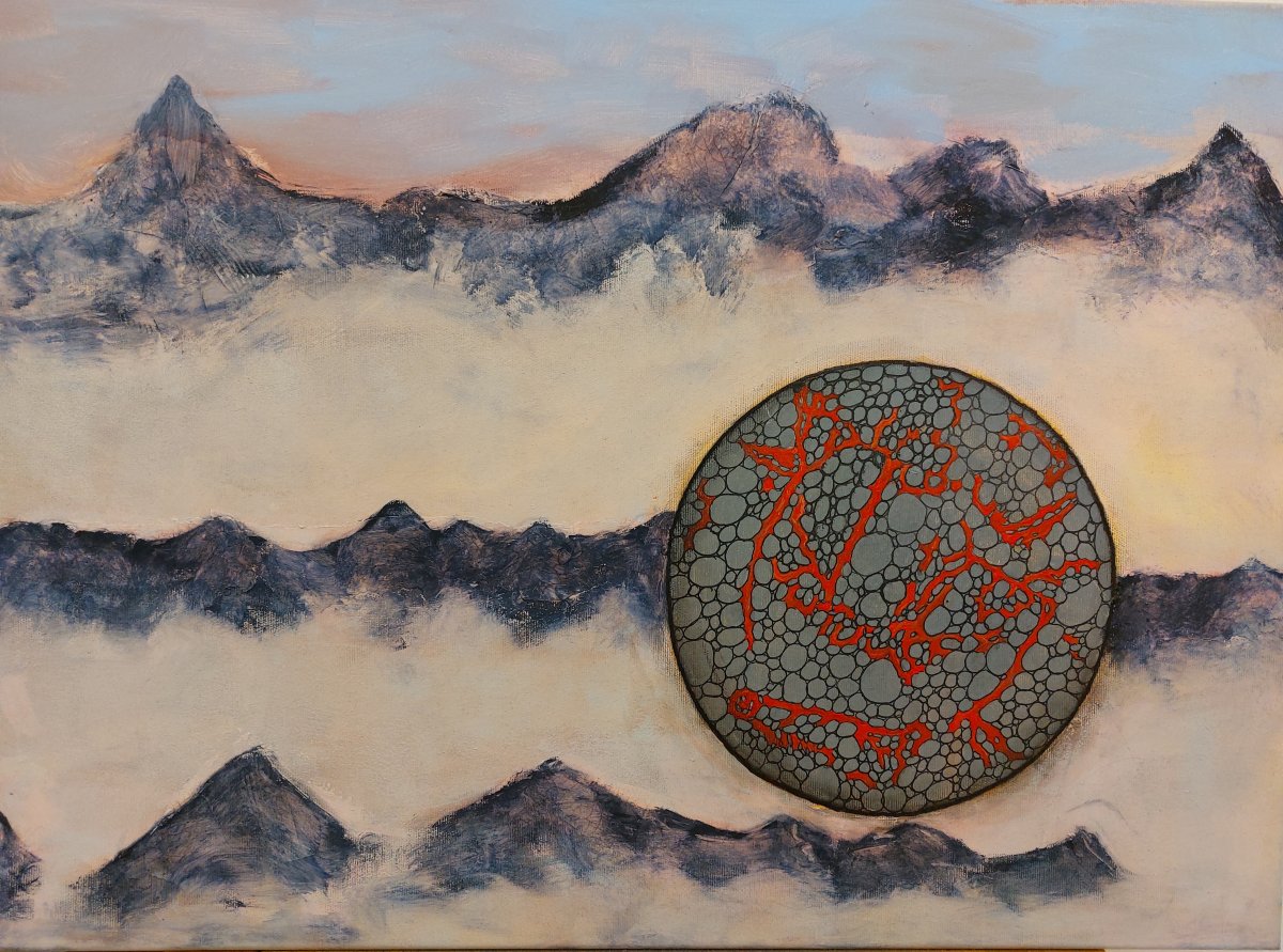 Fremdkörper in rosa Bergwelt 70 x 50
